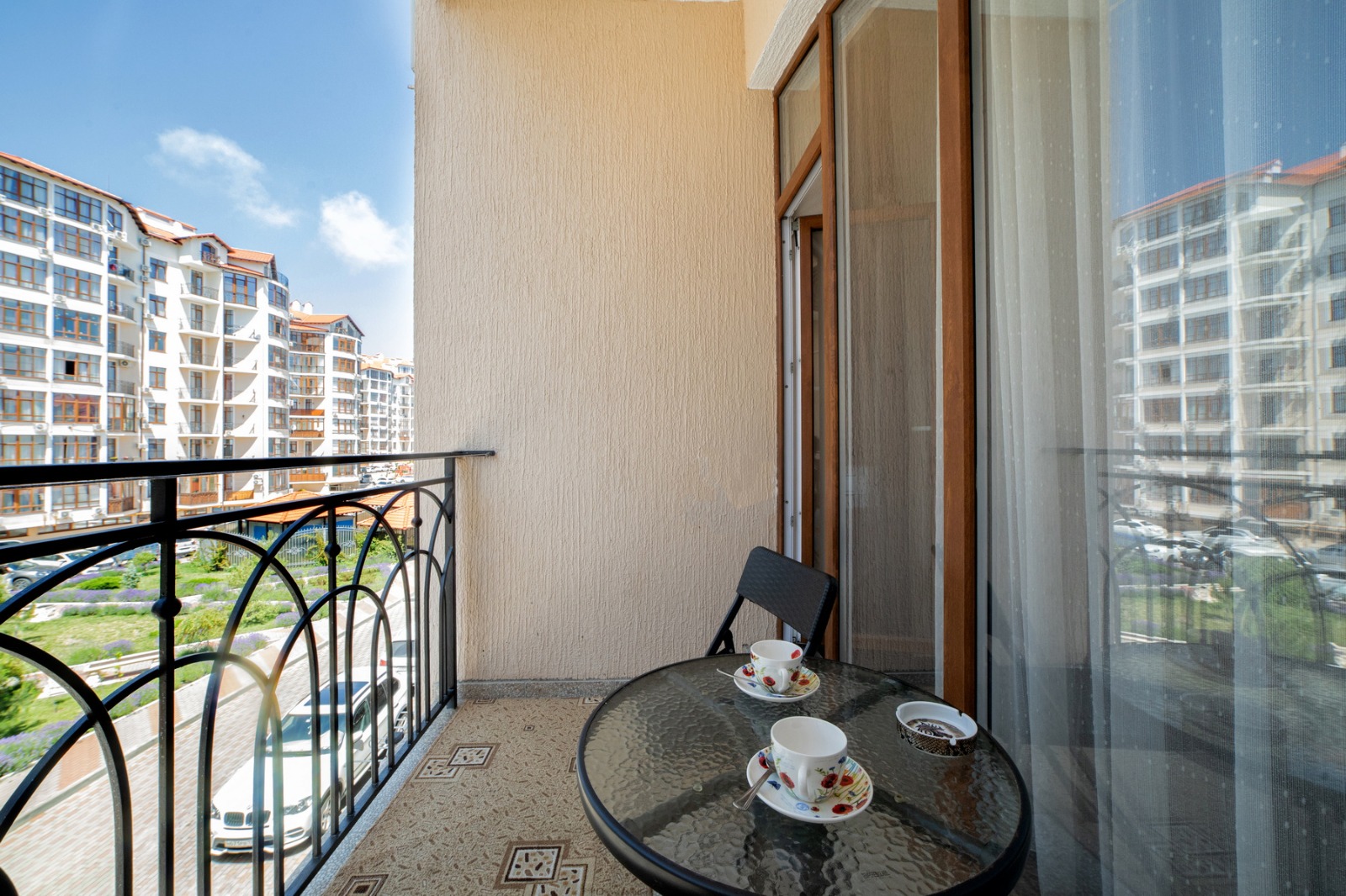 Центральная аллея комплекса выходит на благоустроенную набережную с видом на море;