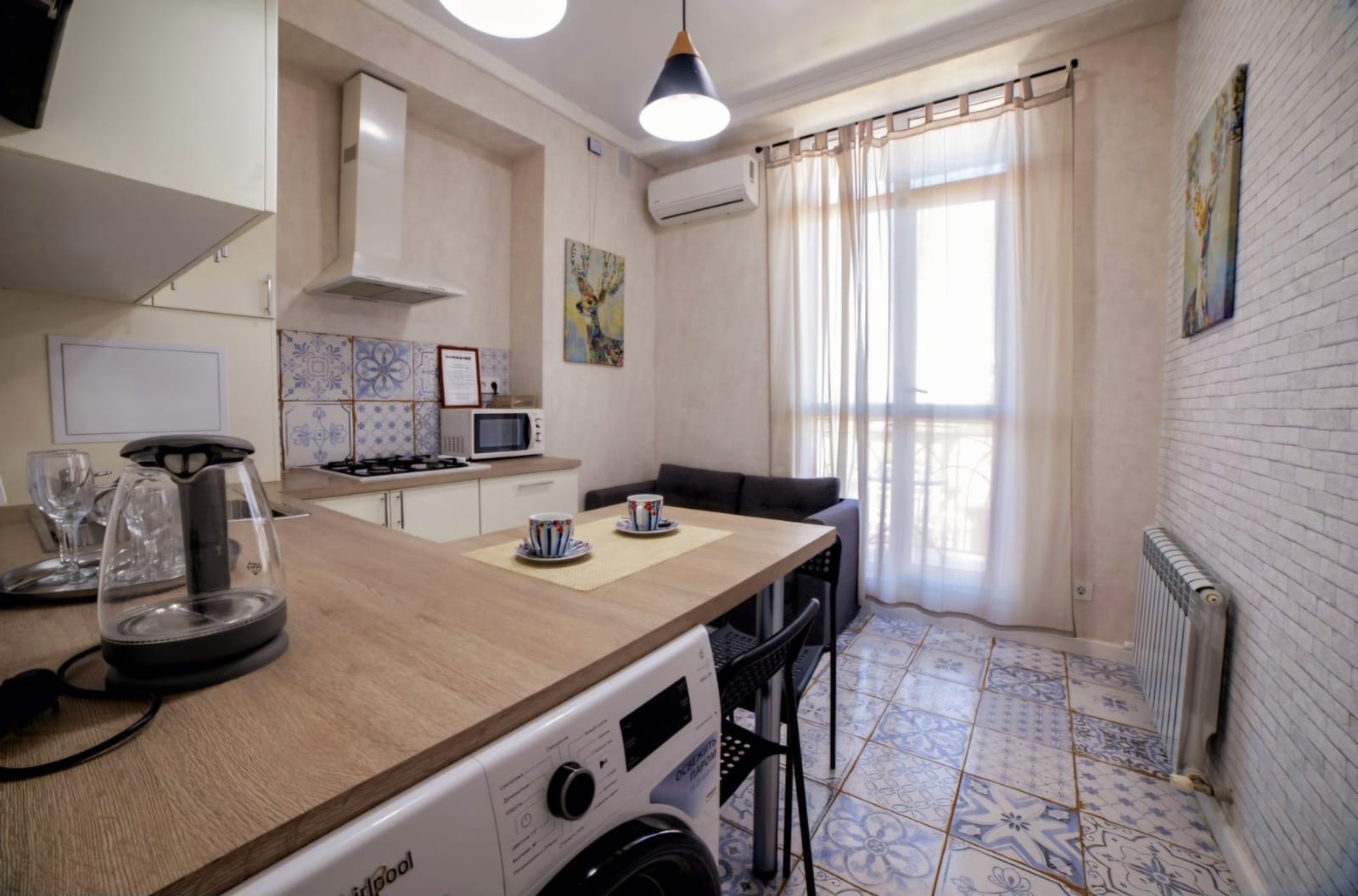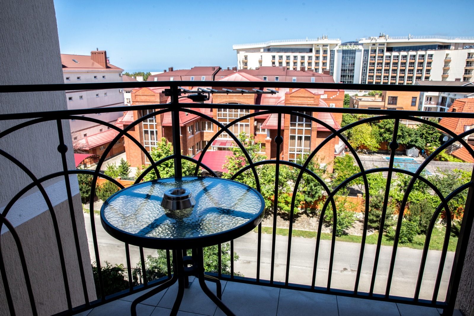 Балкон с видом на Метрополь Гранд Отель и бухту, с сушилкой для белья;