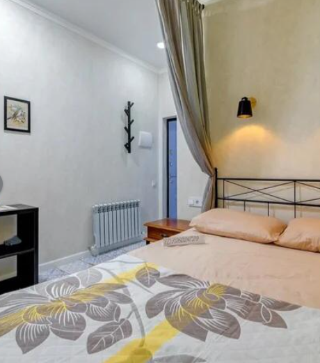 Студия площадью 25,9 квадратных метра находится на пятом этаже, к которому поднимает пассажирский лифт. Пространство продумано так, чтобы трое гостей чувствовали себя комфортно и свободно. В гостиной установлена большая двухспальная кровать размером 160 на 200 сантиметров. Дополнительное спальное место — раскладной диван-кровать 140 на 180 сантиметров. Все спальные зоны оснащены качественным постельным бельём и обеспечивают крепкий, здоровый сон.