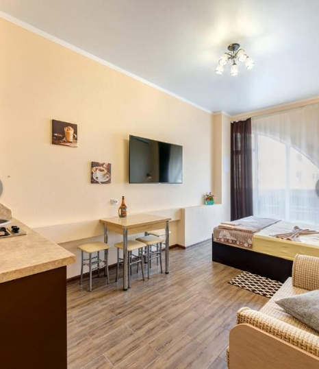 Современная студия в жилом комплексе «Черноморский-2» предлагает гостям Геленджика по-настоящему комфортное проживание на первой береговой линии. Расположенная в престижном районе города, она сочетает в себе удачное местоположение, продуманный интерьер и близость к морю. Центральная аллея комплекса ведёт прямо на благоустроенную набережную, где можно гулять с видом на бухту, дышать морским воздухом и наслаждаться живописными закатами. Рядом — знаменитый поющий фонтан, создающий атмосферу праздника и уюта. До пляжей «Метрополь Гранд Отель» и «Сады Морей» всего 10 минут спокойной ходьбы.